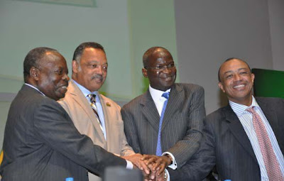 | Governor Babatunde Fashola SAN(2nd R), Rev. Jesse Jackson (2nd L), Lord P. Boateng (R) and Justice O. Ayoola |