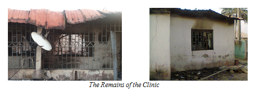 The picture of the burnt carcass is the tragic remain left behind by the assassins who obviously took their time to set the body ablaze after killing him. Evidently, they shot him in the main clinic area and carried his body to the room in the back area where they left him face down.