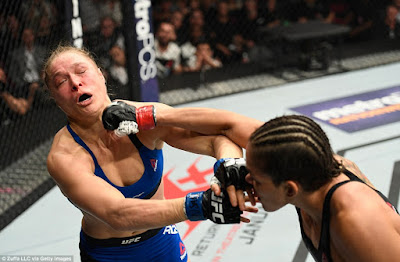 Ronda won twelve consecutive MMA fights, six in the UFC. She won eleven of those fights in the first round, nine of them by armbar submission, before finally suffering her first loss to Holly Holm in 2015. And now to Amanda.